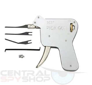 This famous pick gun was designed to quickly pick pin tumbler locks. Unlike conventional hand picks that activates only one or two cylinder pins, this tool is designed to span all the pins at once. Some people can open locks in as little as 2 seconds where others take longer than a minute. All pick guns require practice. Comes complete with 3 pick needles and tension wrench and instructions.