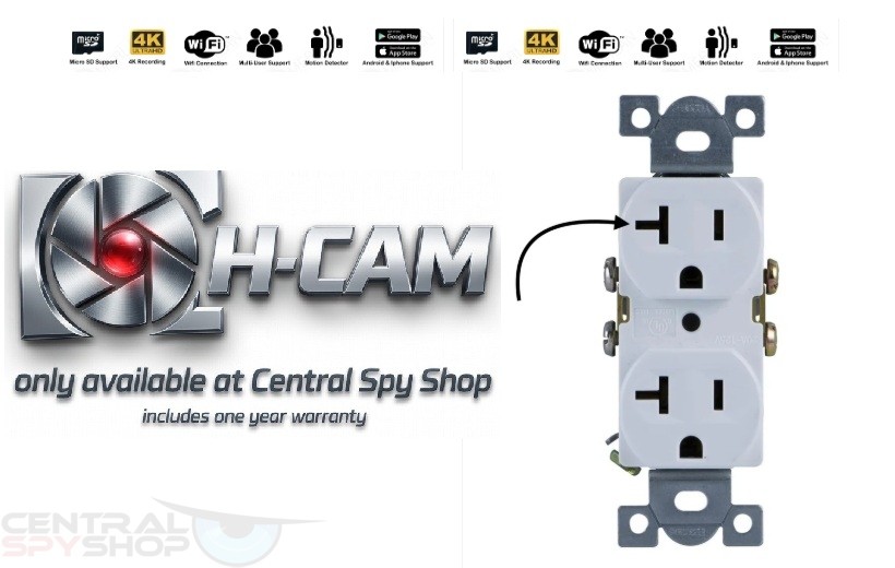 H-Cam T-Plug Style Hidden Surveillance Camera Wall Outlet, Spy Security Camera w/ WIFI